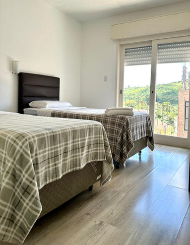 Todos os apartamentos possuem piso flutuante de madeira e são equipados com TV LED 32”, ar condicionado, 2 cama box de solteiro, mesa para trabalho, internet e banho com aquecimento central.